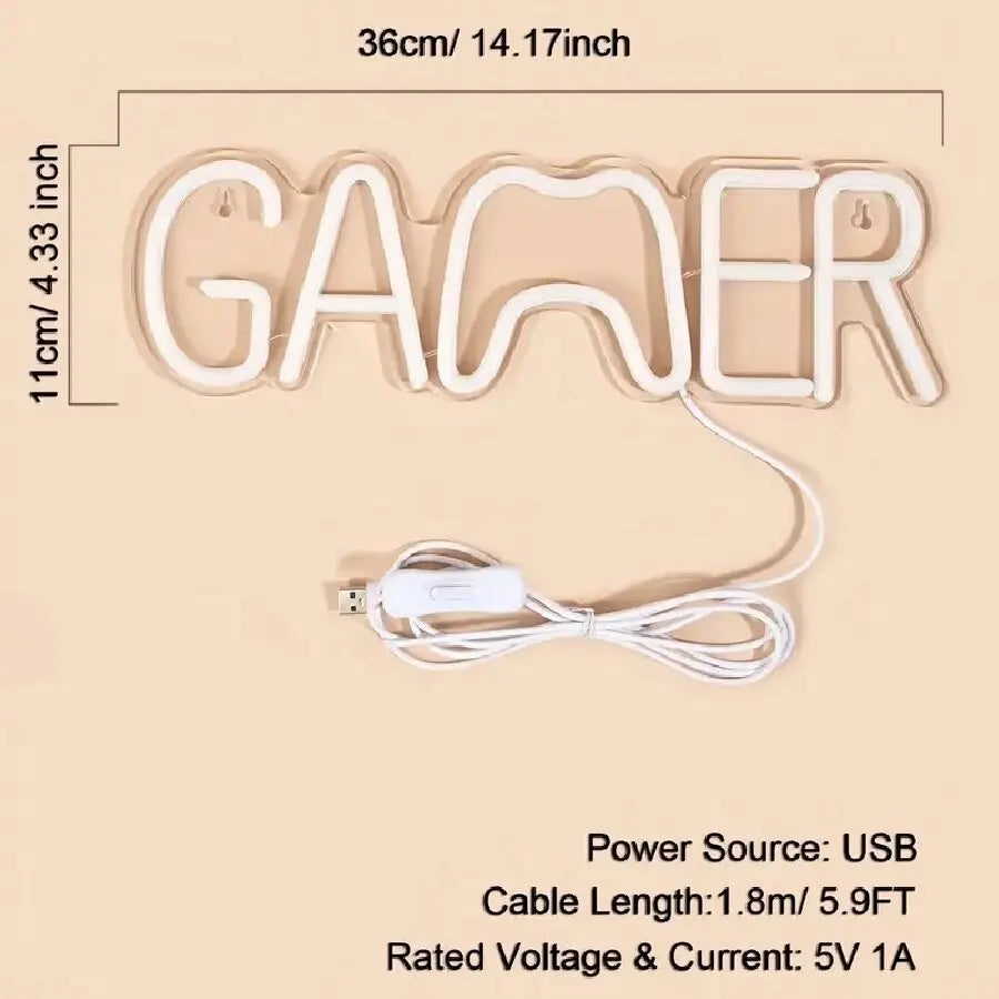 SAFE & ENERGY SAVING & DURABLE: Our gaming neon sign is made of high-quality acrylic backboard and LED strip lights, making the light transmittance extremely strong, soft and uniform. With an advanced electrode system of 5V low voltage, quiet and noiseless, safe to touch,low energy consumption and no heat. It can work at least 50,000 hours or more.