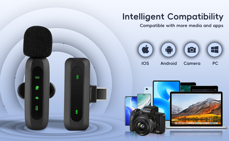 [Extra Long Battery Life] Compared to other wireless microphones, the lavalier wireless microphone has an extra long battery life: only 1.5 hours of charging time and up to 8 hours of operation. The wireless lavalier microphone remains reliable even during long sessions and you can easily charge your mobile phone while using it. For maximum flexibility!