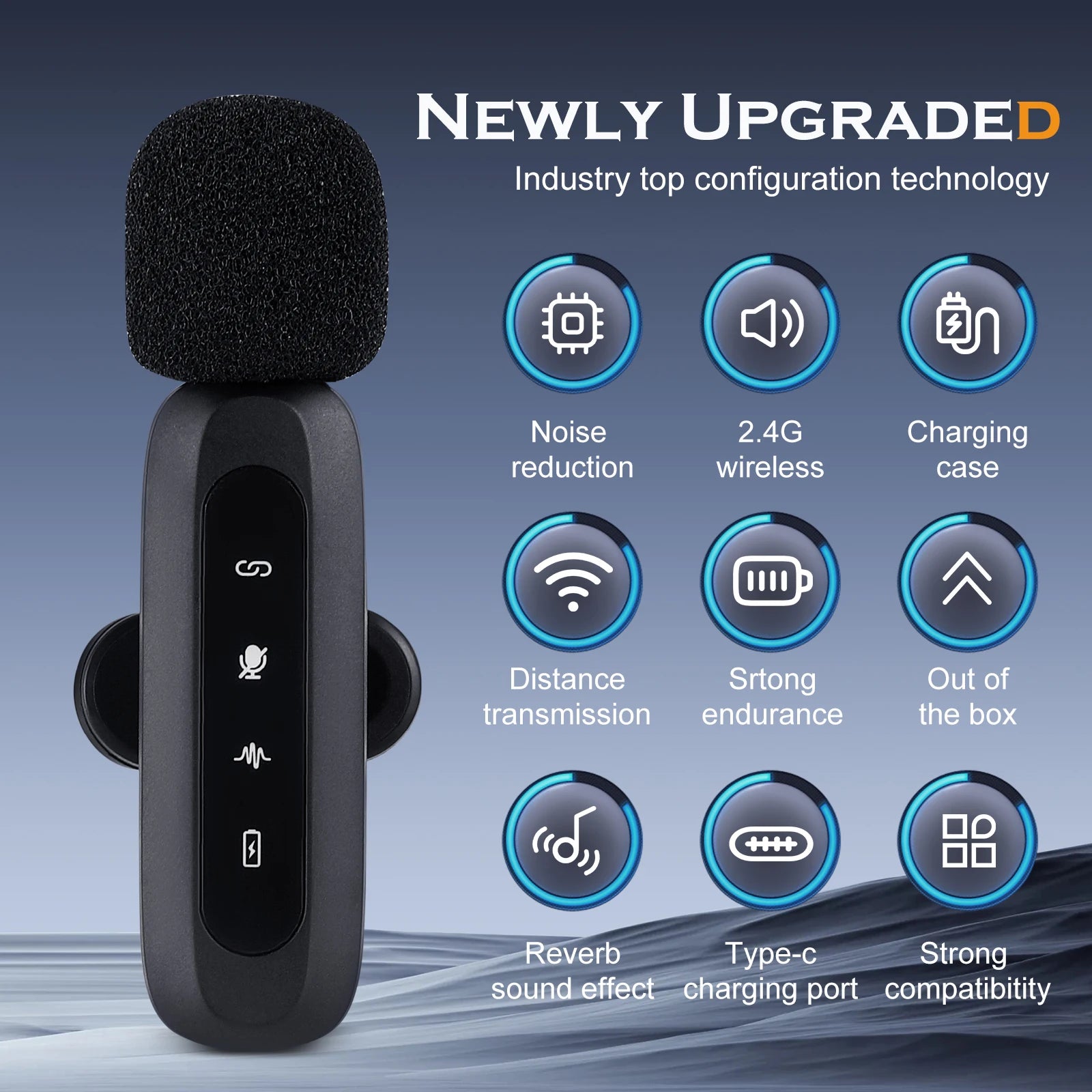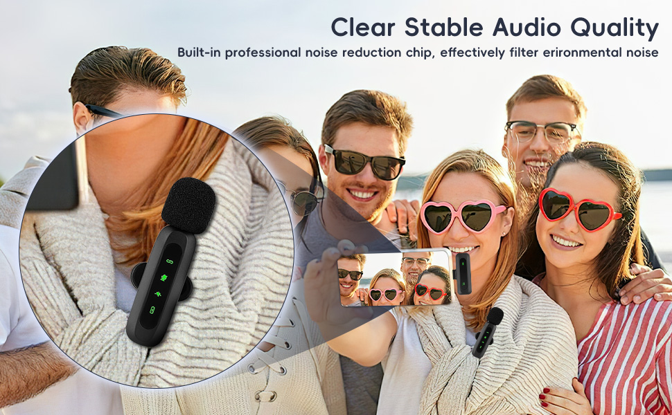 [LED Display] With the LED display of the wireless lavalier microphone, all important functions are visible at a glance: you can directly adjust the noise reduction mode, reverb effect and mute function and monitor the battery level at any time. So you don't have to worry about sudden interruptions.