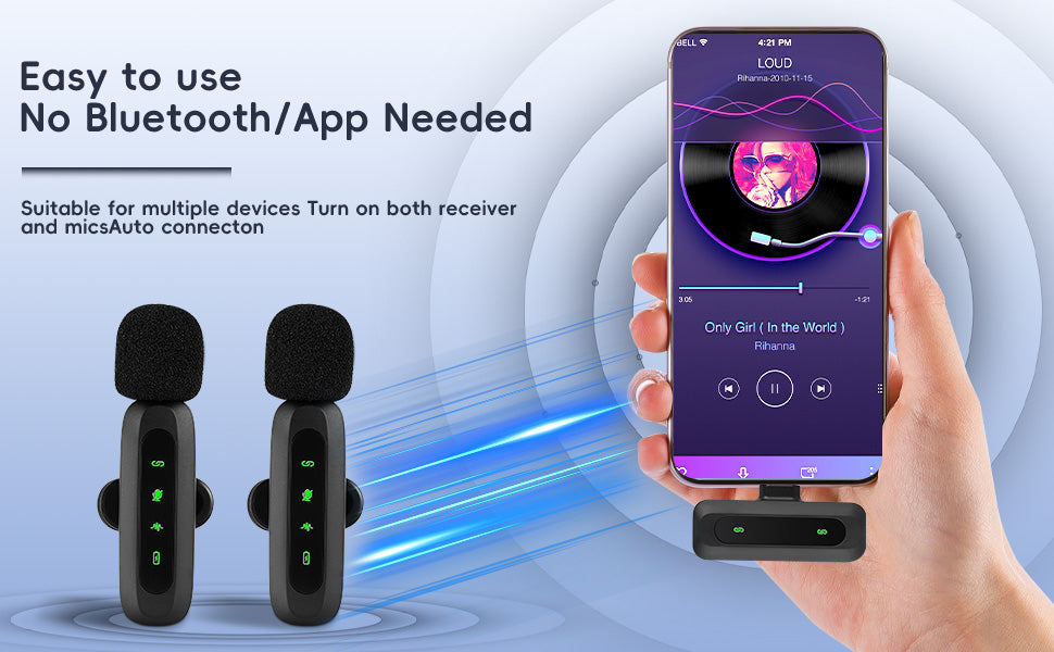 [Plug and Play Clip Microphone] The plug and play clip microphone is simply plugged in and set up automatically. The Lightning Wireless Lapel Microphone for Vlog can be securely attached to clothes, making it the perfect companion for online meetings, video blogs and live streaming - ideal for beginners who want to take their audio quality to the next level!