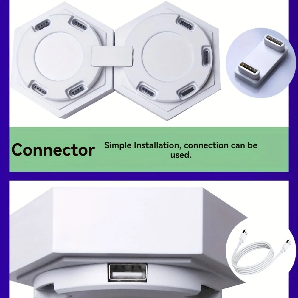 2.The product consists of a series of plastic hexagons, which can be connected with magnets and interlocking patterns to form a touch screen wall lamp. Magnets that make up the physical connections between components also allow current to flow from one component to another.